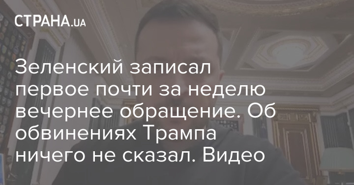 Зеленський записав перше майже протягом тижня вечірнє звернення. Про звинувачення Трампа нічого не сказав. Відео