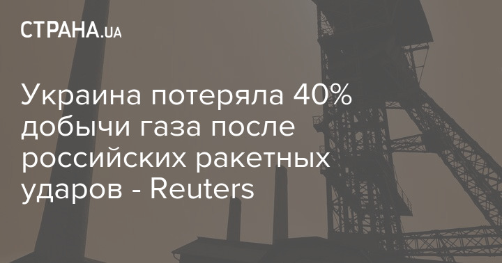 Україна втратила 40% видобутку газу після російських ракетних ударів. Про це повідомляє Reuters із посиланням на джерела.