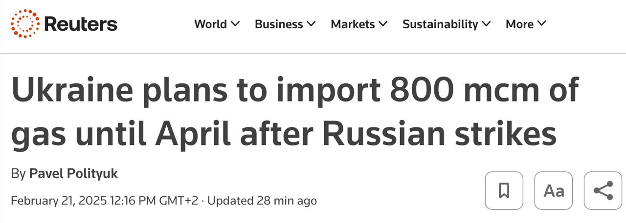 Через це Київ планує імпортувати до 800 млн кубометрів газу з Європи у лютому та березні.