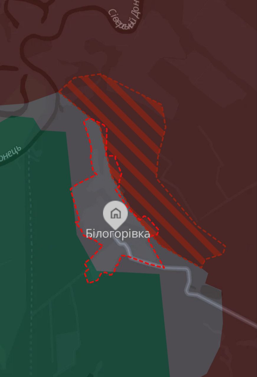 За його даними, захоплено частину села. Нагадаємо, деякі бійці ЗСУ та російські паблики заявляли про втрату Україною всієї Білогорівки, за яку запеклі бої ведуться вже 2,5 роки.