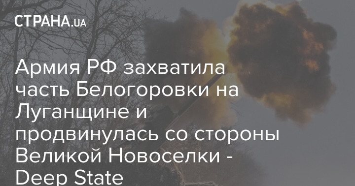 Український військовий телеграм-канал Deep State підтверджує просування РФ у селі Білогорівка на Луганщині.