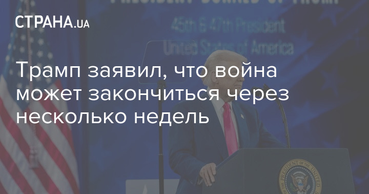 Президент США Дональд Трамп на брифінгу заявив, що війна в Україні може закінчитися "за кілька тижнів", а переговори з Росією йдуть "дуже добре".