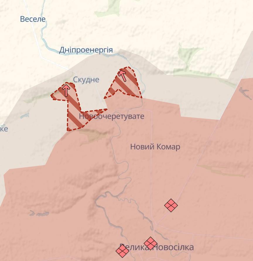 Також армія РФ просунулася на північ від Великої Новосілки, де наступ російських сил йде найбільш інтенсивно і нові території захоплюються практично щодня.