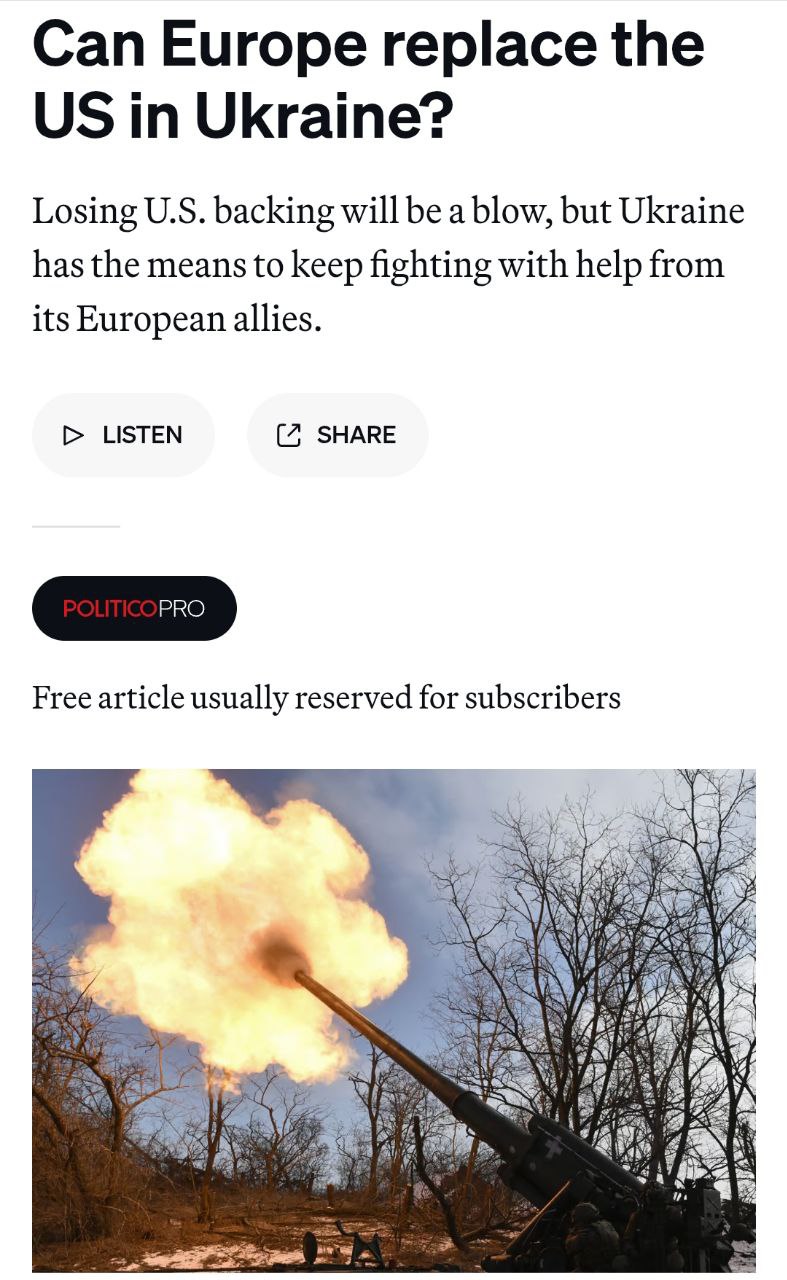 Але деякі види американського озброєння, такі як сучасні системи ППО, балістичні ракети, навігаційні системи та далекобійна артилерія, практично неможливо замінити. Європа просто не виробляє достатньої кількості таких систем — а в деяких випадках зовсім не виробляє.