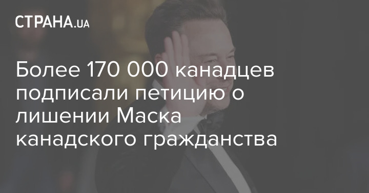 Понад 170 000 канадців підписали петицію із закликом позбавити главу Департаменту ефективності уряду США (DOGE) Ілона Маска канадського громадянства. У відповідь на це він назвав Канаду "несправжньою країною".