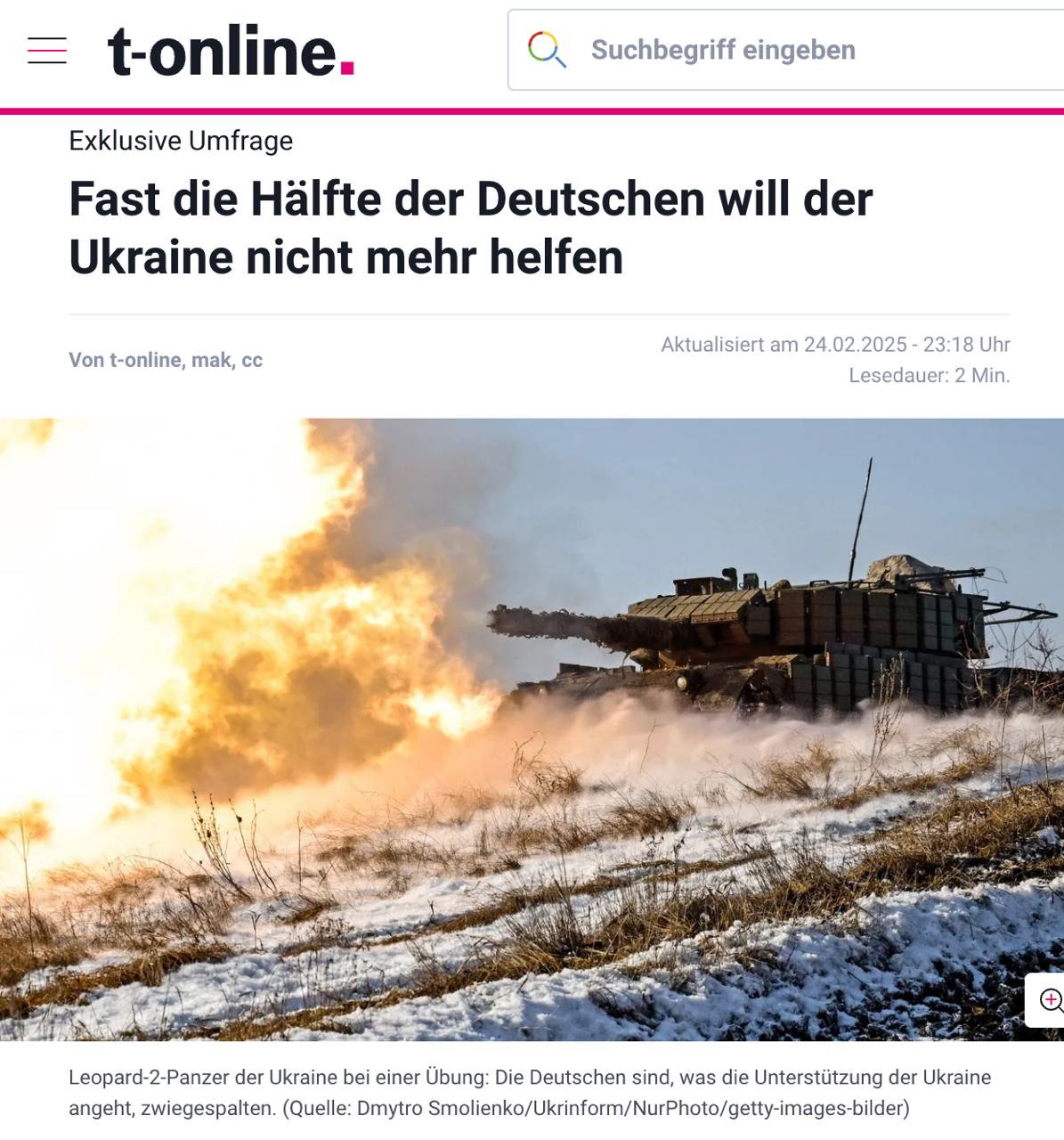 Із початку лютого 40% німців перестали підтримувати фінансову та військову допомогу Україні - опитування