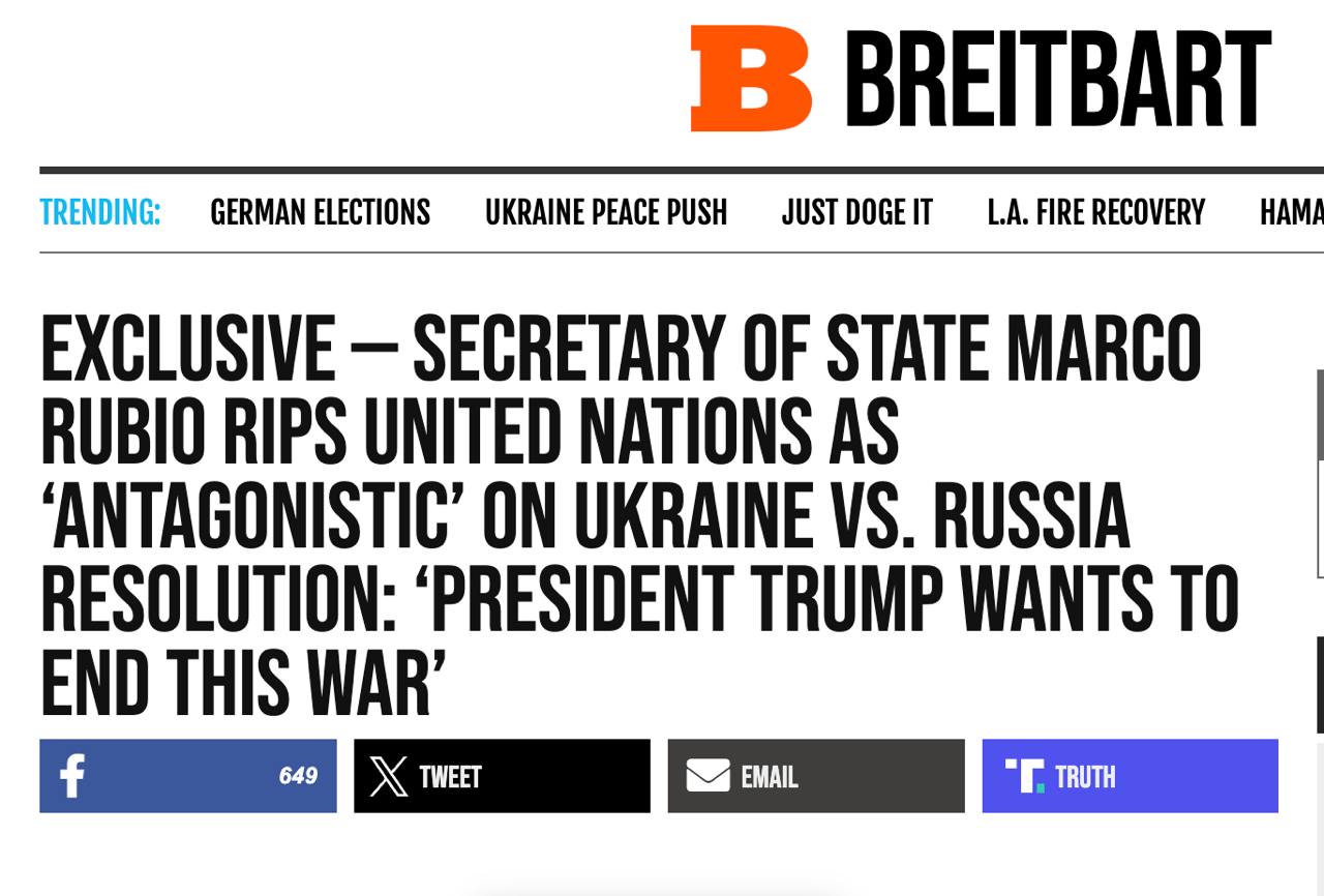 Про це заявив держсекретар США Марко Рубіо в інтерв'ю газеті Breitbart News.