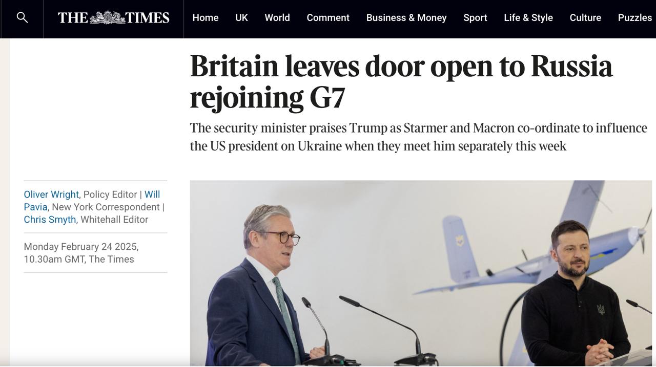 За даними видання, британський міністр безпеки Ден Джарвіс не виключав ймовірності повернення РФ до G7.