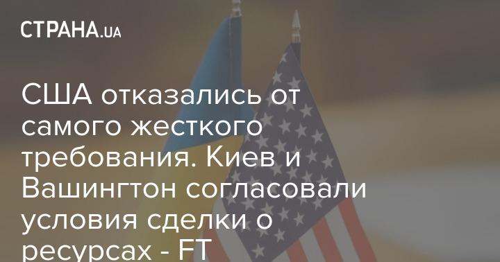 Видання повідомляє, що США відмовилися від найжорсткішої вимоги: виплатити їм 500 мільярдів доларів доходу від продажу будь-яких українських ресурсів.