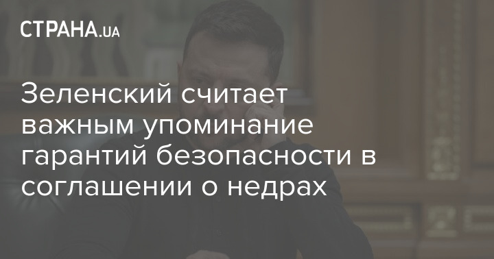 Зеленський вважає важливим згадування гарантій безпеки в угоді про надра
