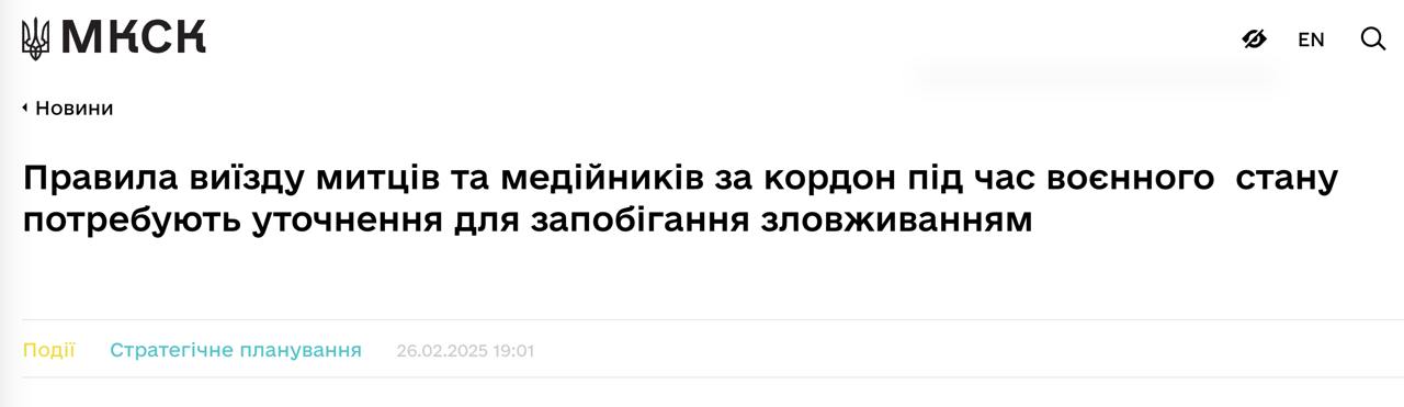 Міністерство культури з 3 березня перестане випускати за кордон журналістів та митців.