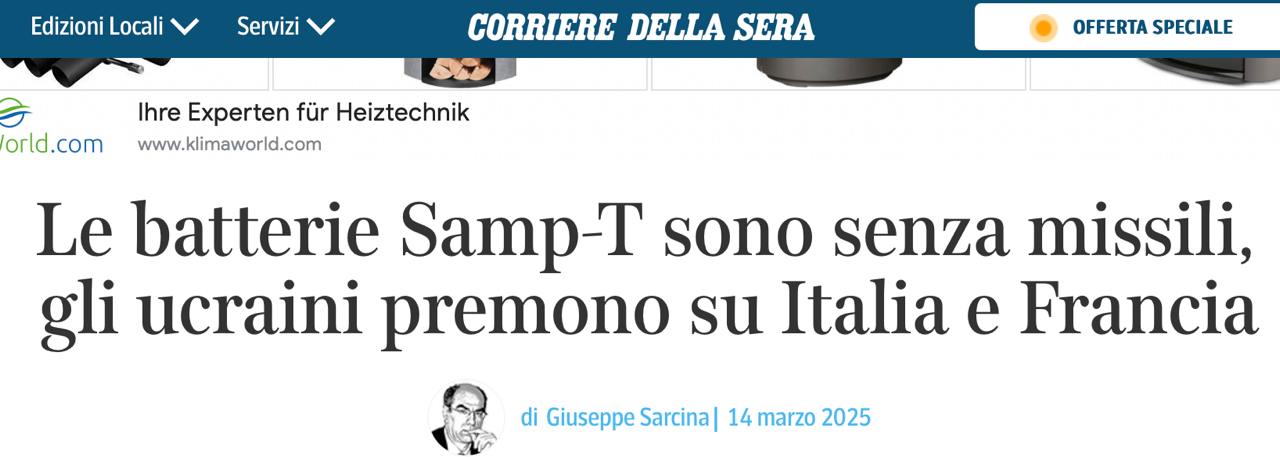 "Вже кілька тижнів уряд Володимира Зеленського просить обидві країни відправити більше ракет Aster-30 (якими заряджаються Samp-T - Ред.). Принаймні, п'ятдесят знадобилося б. Проблема в тому, що італійський резерв практично досягнув рівня бойової готовності. Інші ракети використовуються для забезпечення захисту чутливих цілей на національній території", - повідомляє прес-служба.