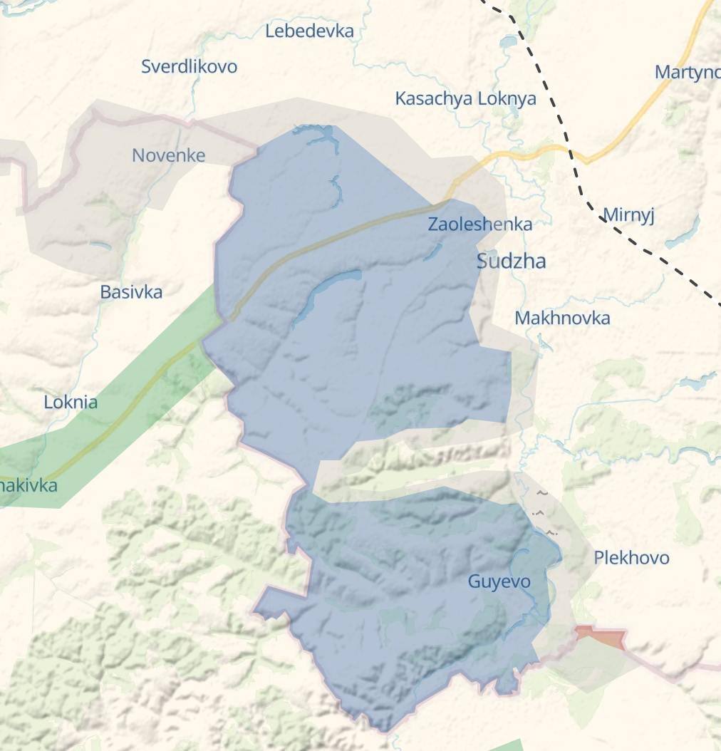 На картах як українських, так і російських пабліків фіксується наявність двох невеликих плацдармів ЗСУ в Курській області на захід від Суджі (в районі Гоголівки) та на південь від Суджі (в районі Гуєво). І вони не перебувають в оточенні. Російські телеграм-канали пишуть, що зараз іде штурм і Гоголівки, і Гуєва. Деякі військові пабліки РФ заявляють, що обидва населені пункти росіянами вже взято (Україна цього не підтверджувала).