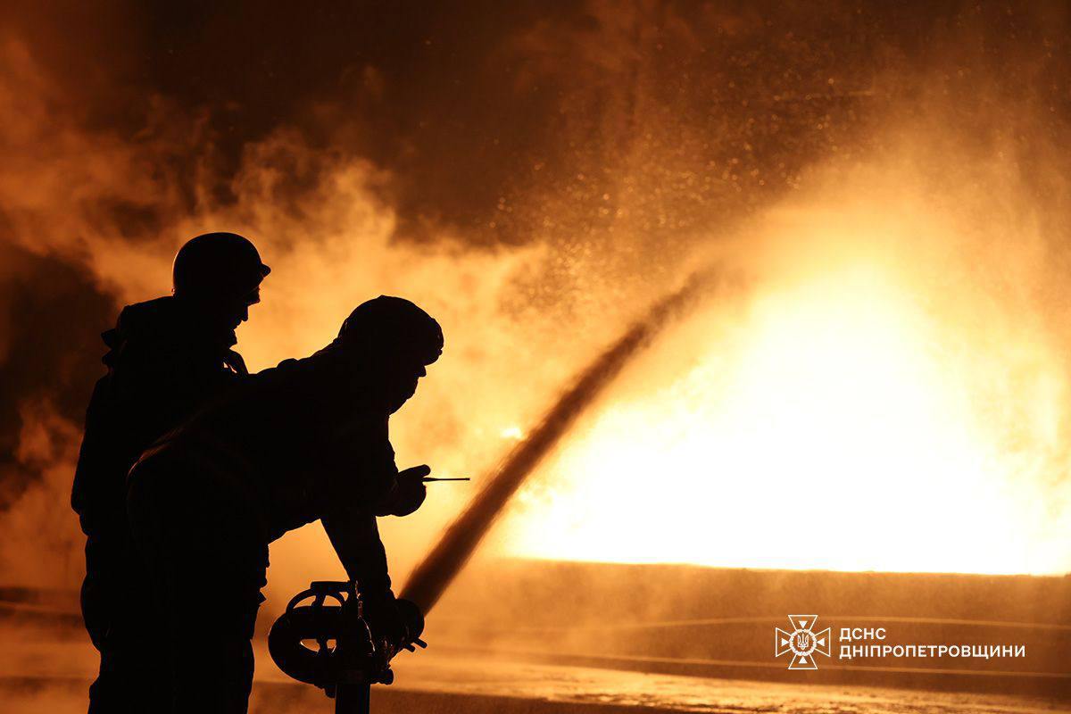 Через атаку БПЛА у Дніпровському районі сталися пожежі на двох підприємствах. Рятувальники їх уже загасили. Ніхто не постраждав.