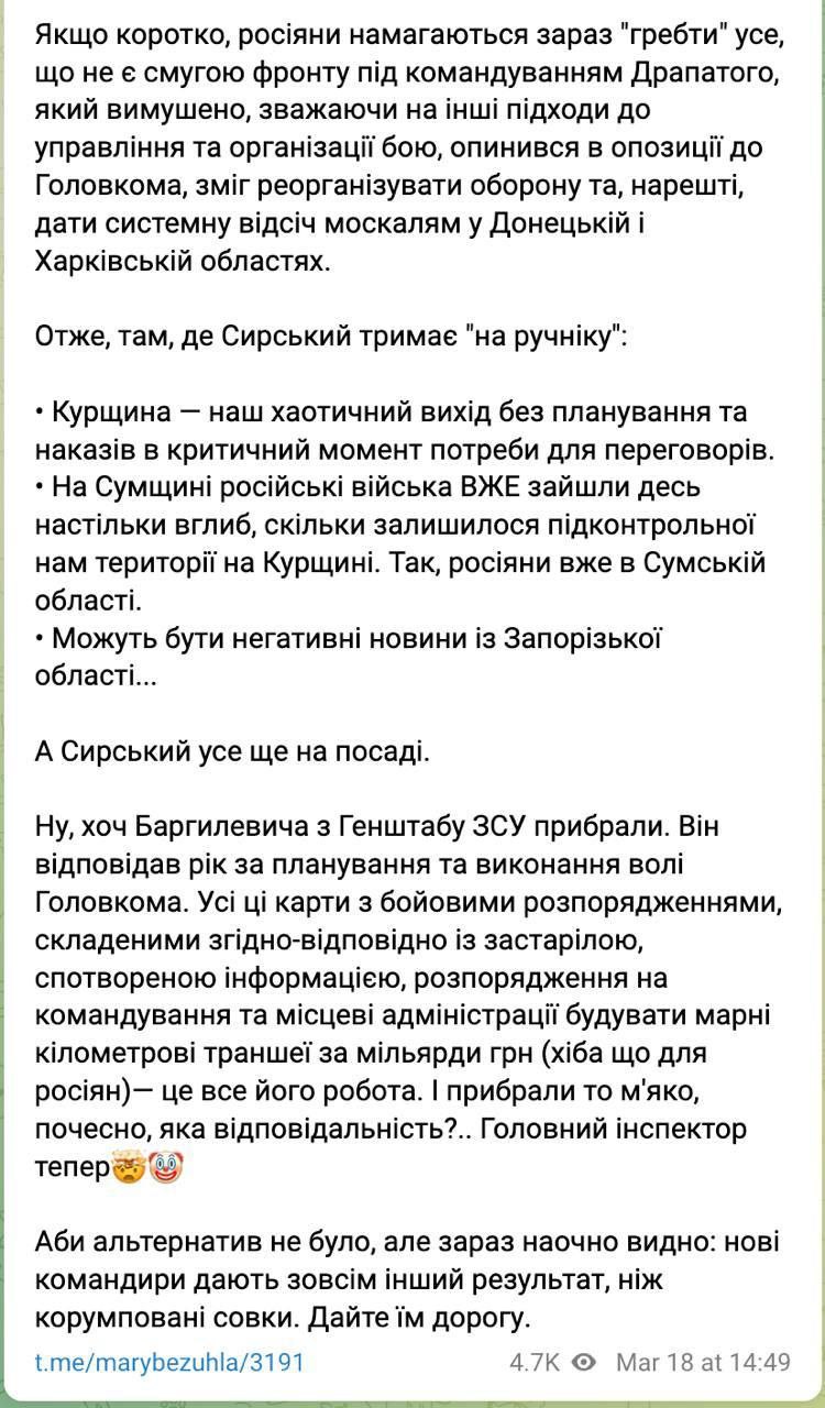 Він каже, що "ключові рішення ухвалюються військовими", а Зеленський "оцінює, які рішення ухвалює, але я не думаю, що президент безпосередньо наполягав, щоб це (вихід із Курщини - Ред. ) було саме так".