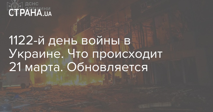 У п'ятницю, 21 березня, в Україні триває 1122-й день війни з Росією.