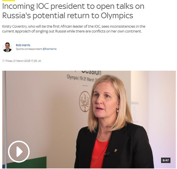 Кірсті Ковентрі, яка стане першим африканським головою Міжнародного олімпійського комітету (МОК), заявила, що виступає проти усунення країн від участі в Олімпіадах через війни і має намір розпочати переговори про можливе повернення Росії на Ігри.