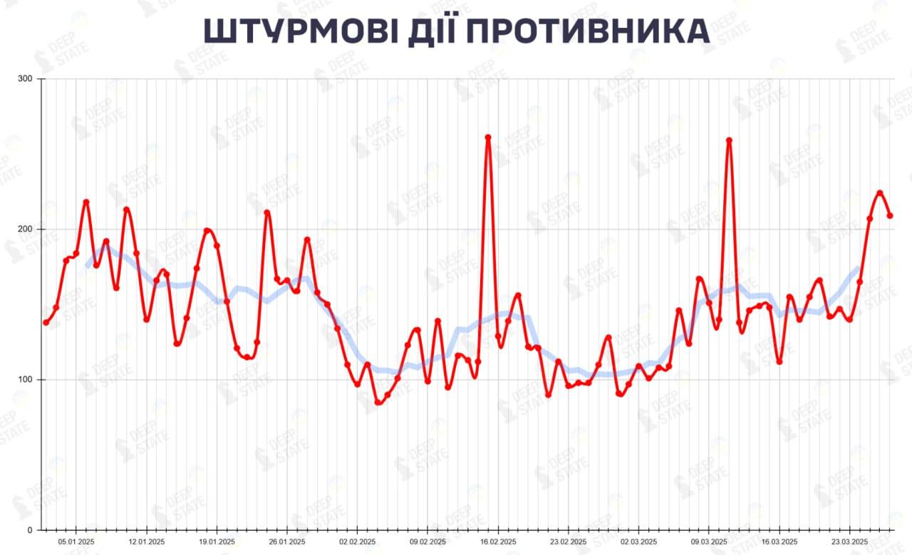 Минулої доби росіяни здійснили понад 200 штурмів - найбільша кількість за три дні цього року.