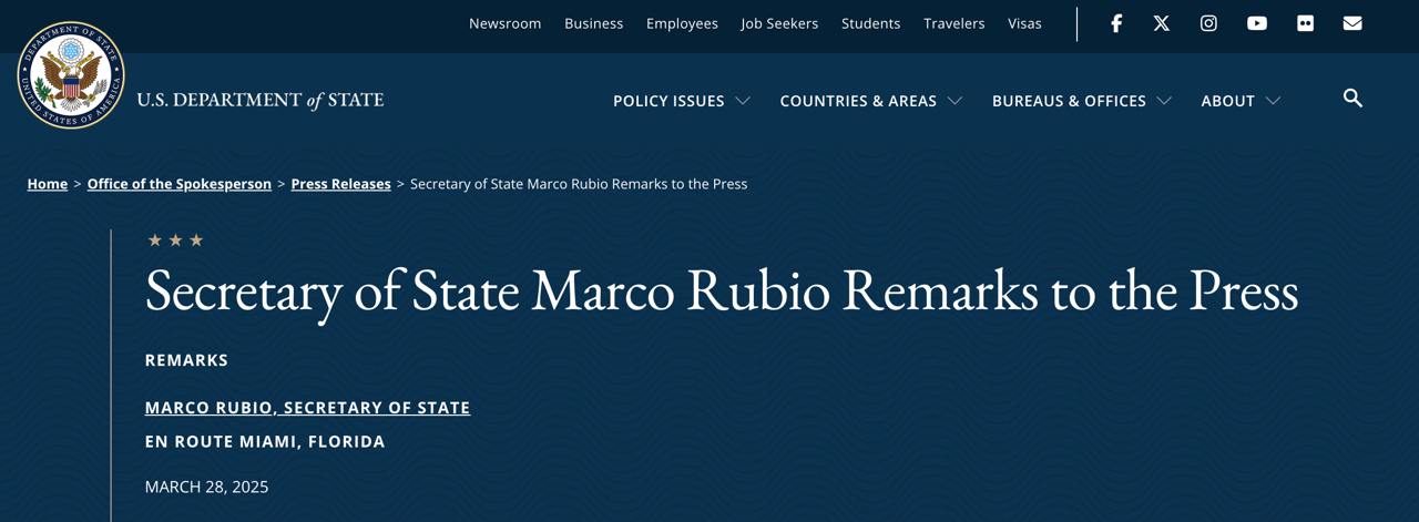 Державний секретар США Марко Рубіо не став відповідати, скільки часу може знадобитися для завершення війни в Україні під час спілкування з журналістами на шляху до Майамі.