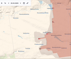 Просування росіян фіксує і український паблік Deep State. За його даними, за останні кілька днів війська РФ зайняли низку територій у районі Котлярівки, Преображенки та Надєждінки, а також на північ, у районі Успенівки.