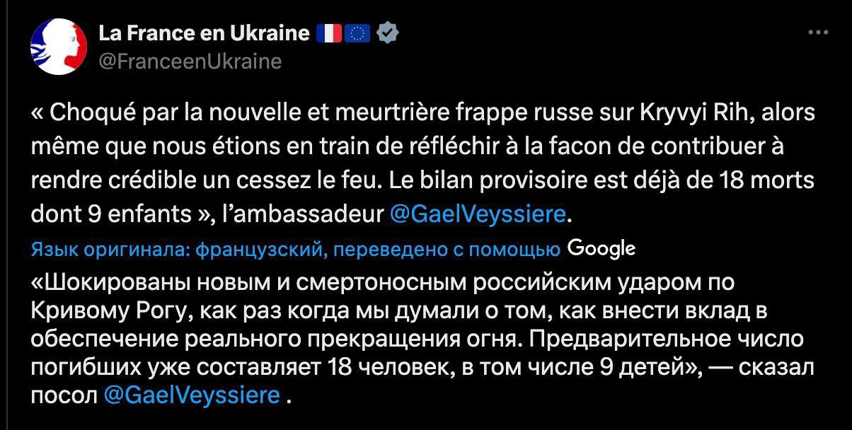 При цьому справді рівень коментування трагедії у Кривому Розі виявився для західних країн незвично стриманим. Особливо з боку ключових країн-партнерів України із Європи.