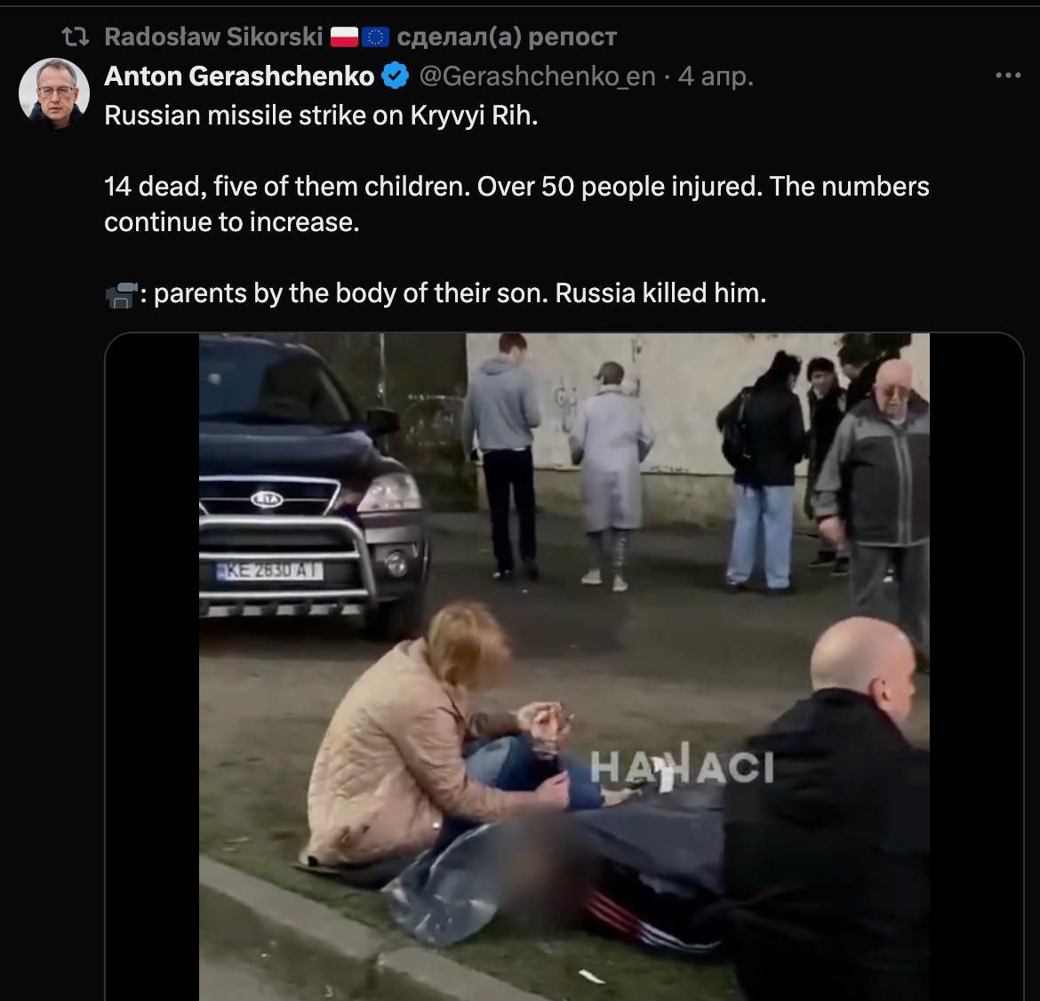 Українська влада удар по Кривому Рогу зараз подає як аргумент на користь необхідності посилення тиску на РФ, оскільки Москва "не хоче закінчувати війну". Саме такий меседж українська влада намагалася донести до США ще до трагедії у Кривому Розі. І ці зусилля після російського удару по місту різко зросли. Траур оголосили не лише у Кривому Розі, а й у низці інших міст по всій Україні.