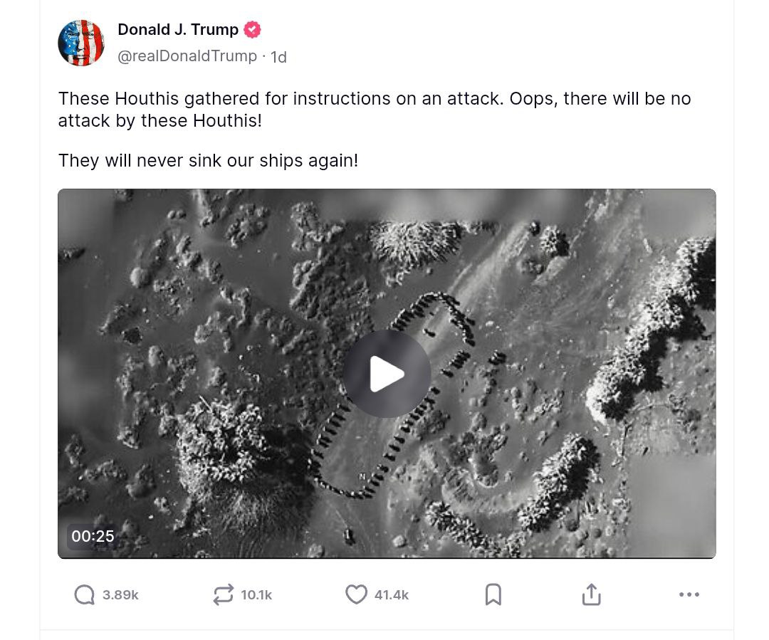 А Дональд Трамп у ніч після удару РФ по Кривому Розі опублікував із "веселим" коментарем відео американського удару по скупченню хуситів.