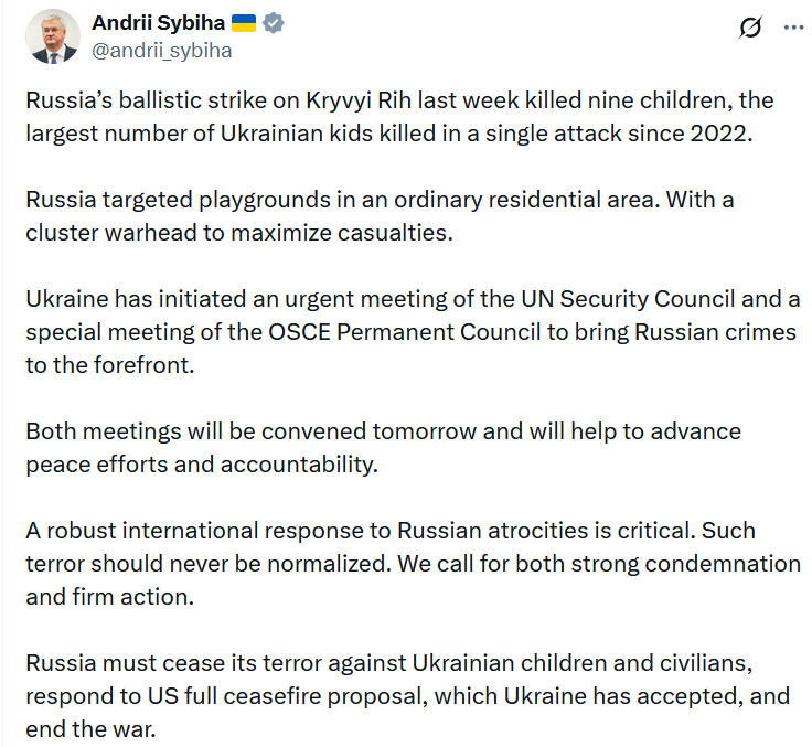 Глава МЗС України Андрій Сибіга. Фото: x.com/andrii_sybiha