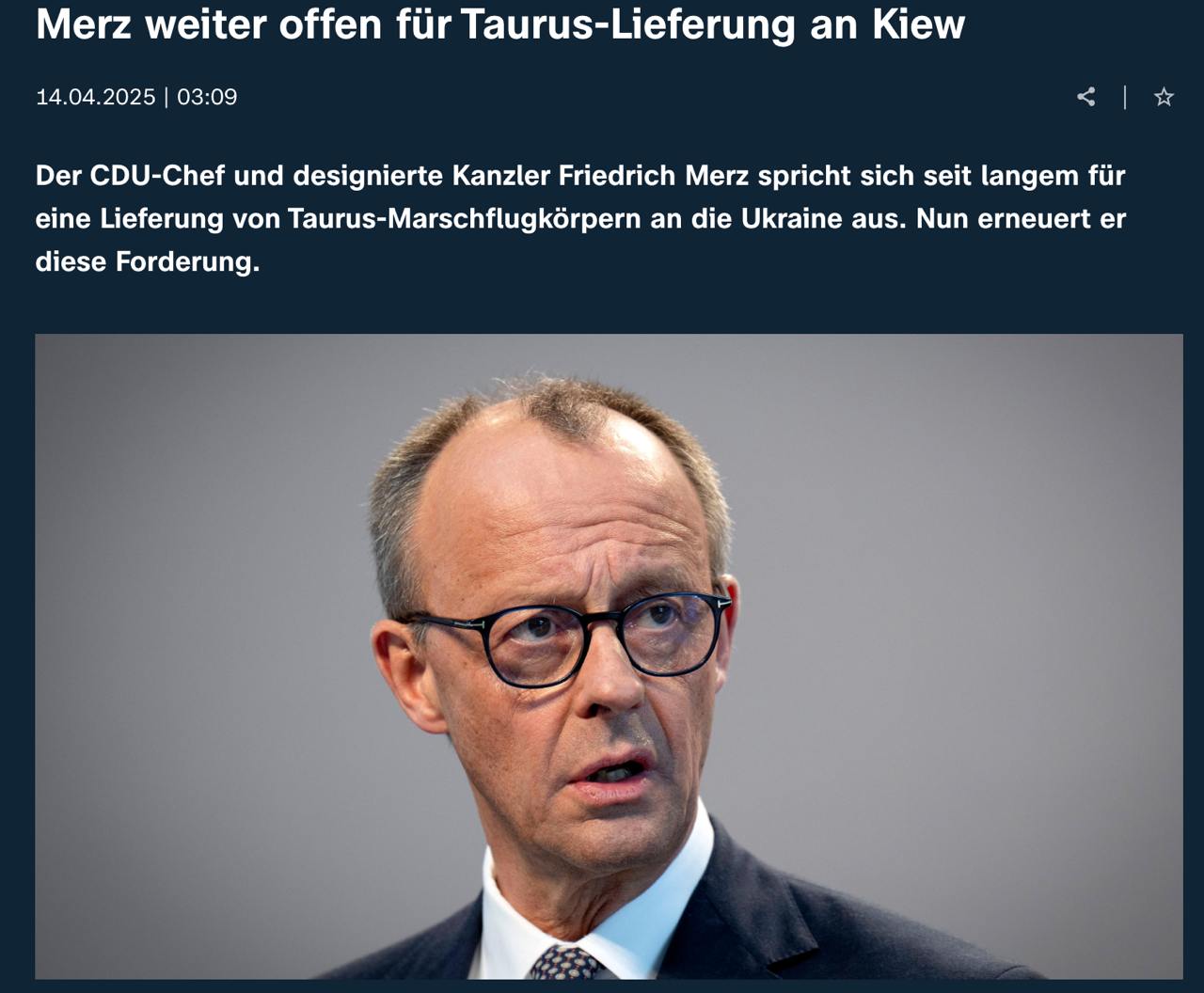 Видання ZDF нагадує, що в ході передвиборної кампанії Мерц обходив тему "Таурусів", хоча раніше також закликав до їх постачання Києву.