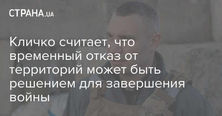 Мер Києва Віталій Кличко вважає, що тимчасова відмова від територій може бути рішенням для завершення війни.