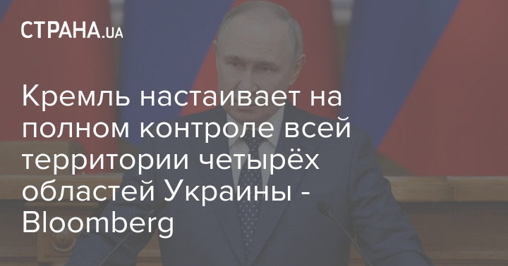 Президент Російської Федерації Володимир Путін наполягає на тому, що у рамках будь-якої мирної угоди Москва має контролювати всю територію чотирьох областей України: Донецької, Луганської, Херсонської та Запорізької.