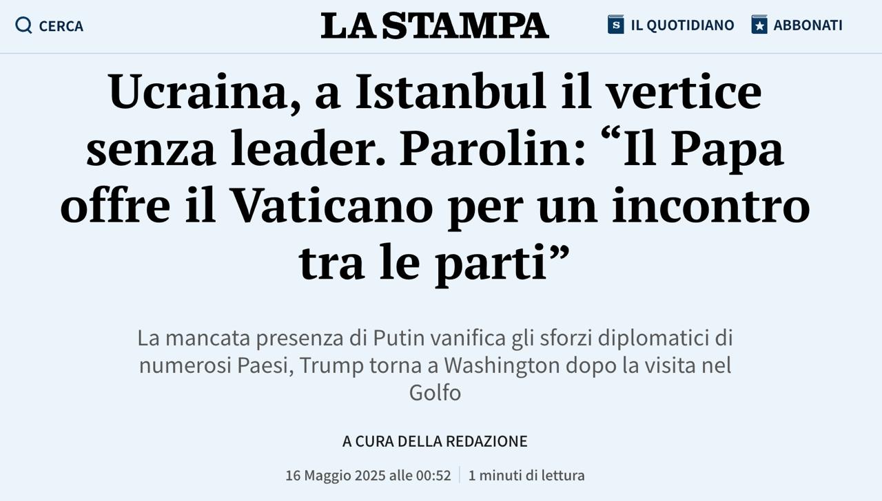 Після того, як Володимир Путін не з'явився на мирні переговори в Туреччині, які він сам і запропонував, Ватикан назвав їхній результат "трагічним".