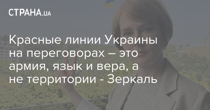 "Ви вважаєте, що території - це основне питання? Глава РФ Володимир Путін прикривається територіями для продовження війни. Це не є основним питанням. Я не думаю, що у нас так стоїть питання, що територія - це наша червона лінія. Я дійсно думаю, що для нас червоні лінії існують у розумінні збереження державності. Державність не може бути збережена, якщо нам нав'язуватимуть російську церкву та російську мову. І нам треба зберігати армію. Це і є три наші ключові фактори та червоні лінії", - заявила Дзеркаль.