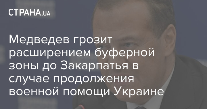 Заступник голови Ради безпеки РФ Дмитро Медведєв вимагає від західних партнерів Києва припинити військову допомогу ЗСУ, пригрозивши захопленням майже всієї території України.