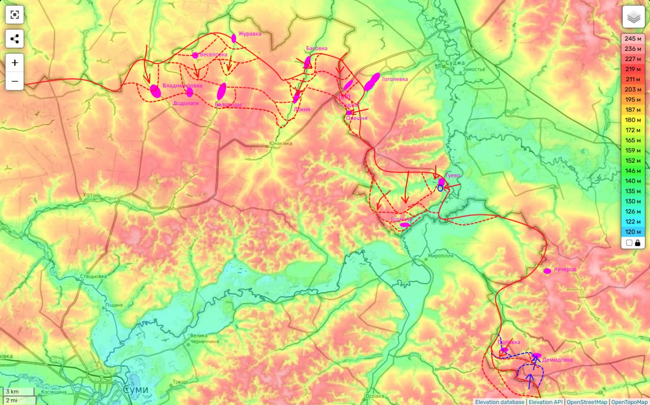 Україна цього не підтверджувала. Водночас військовий паблік Deep State повідомив, що РФ закріпилася на більшій частині свого плацдарму в Сумській області - віднісши Локню та Біловоди до "сірої" зони. Володимирівка ж, за версією DS, досі не зачеплена боями.