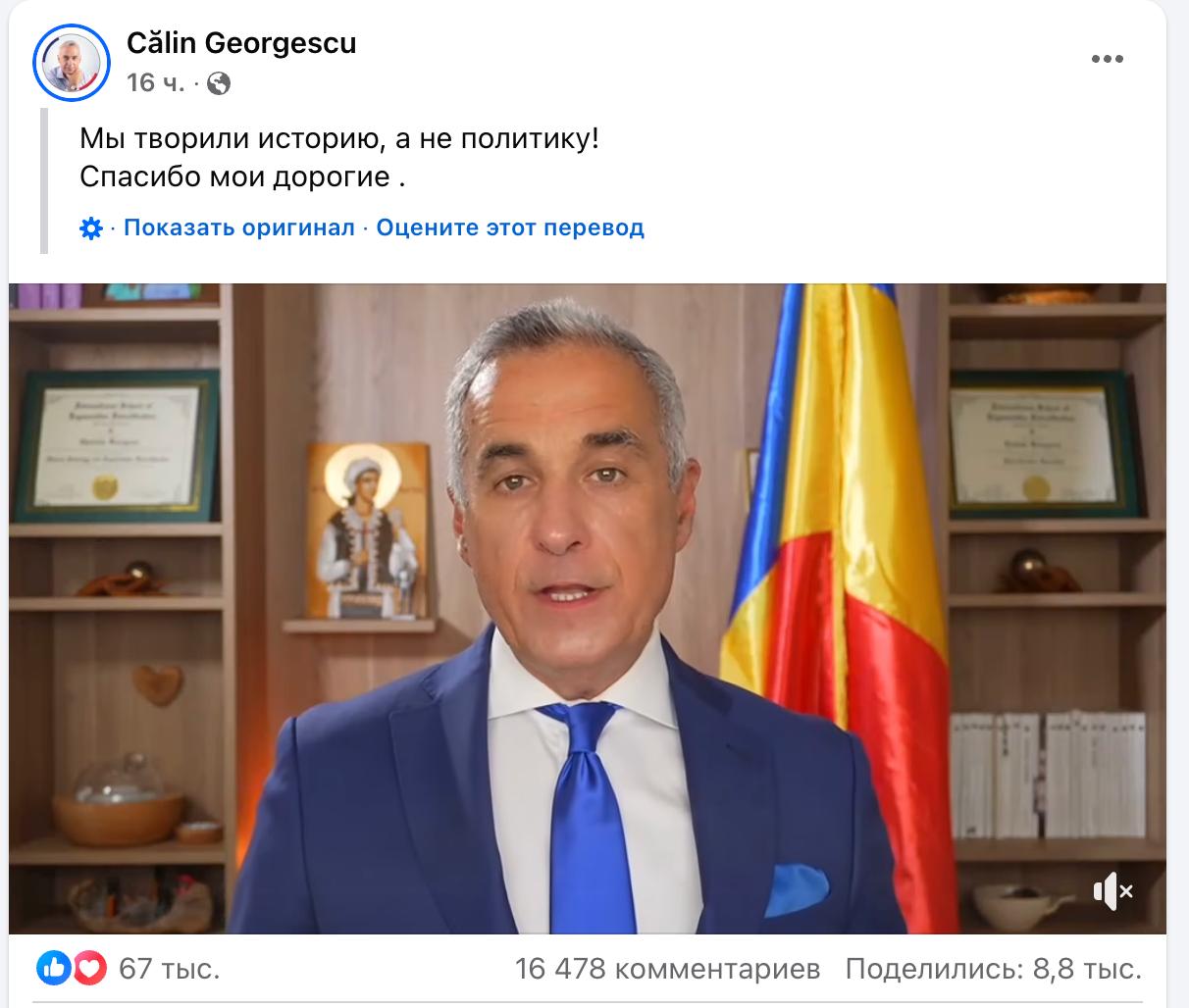Нагадаємо, Джорджеску переміг у першому турі президентських виборів, проте результати голосування скасували через нібито втручання Росії, яке так і не було доведено.