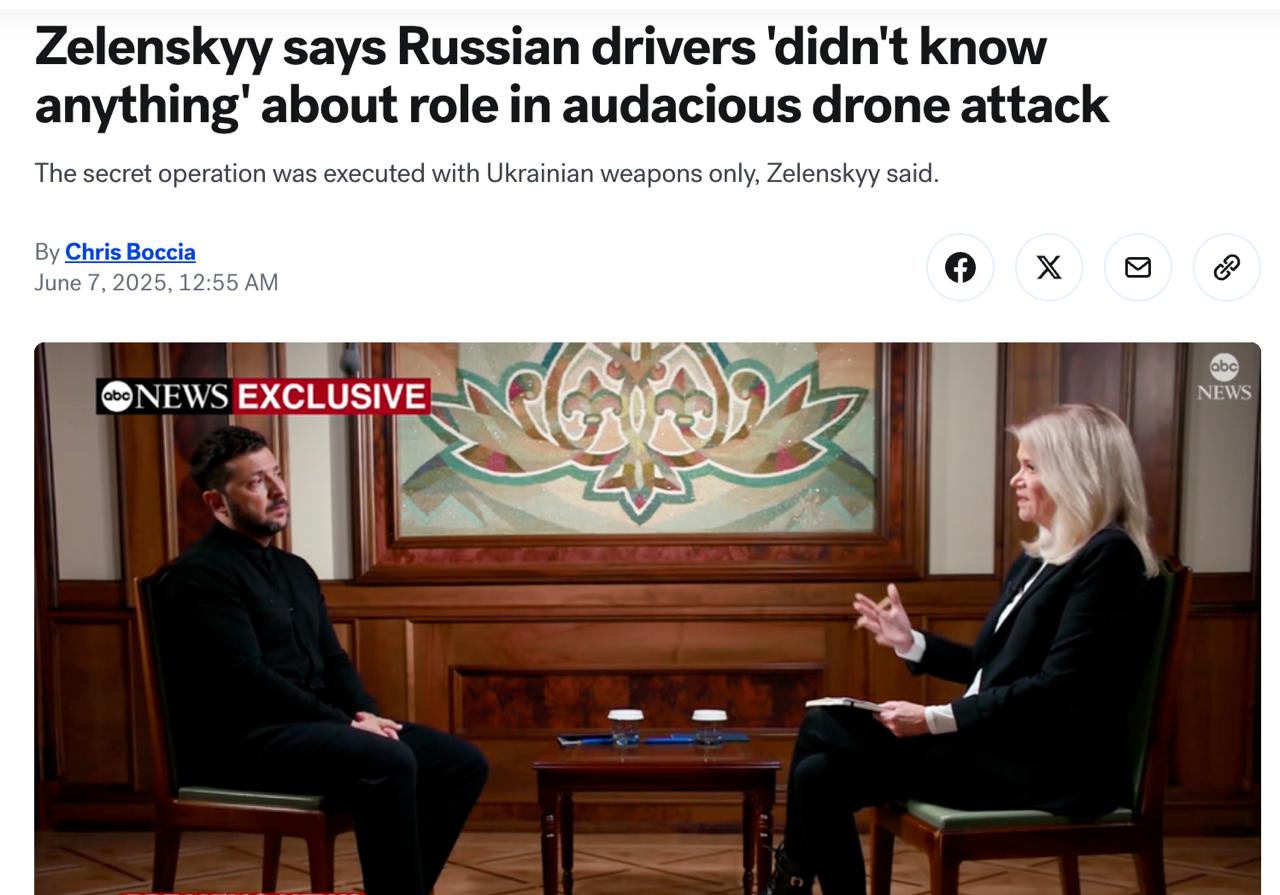 Водії вантажівок, які перевозили дрони для атаки на бомбардувальники РФ, "нічого не знали" - Зеленський