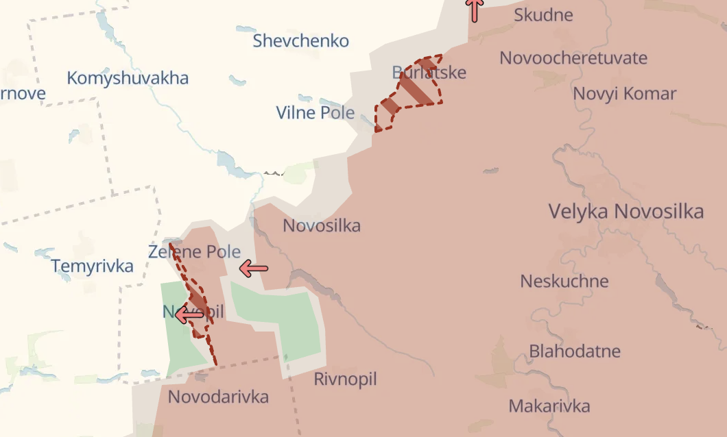 Ще на південь росіяни просунулися на захід від Великої Новосілки - в районі Зеленого Поля та Бурлацького.