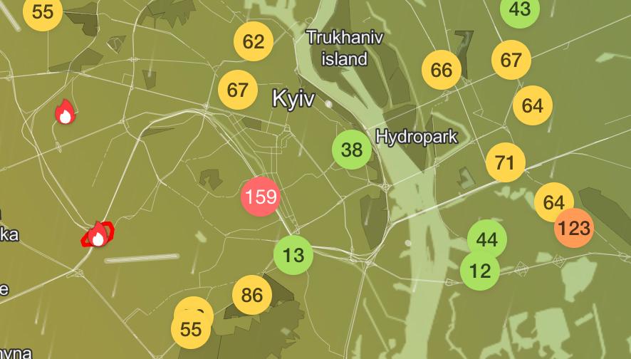 Це приблизно збігається з даними про погіршення повітря у Києві (картка 2).