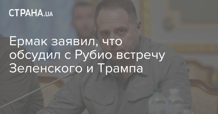 Глава Офісу президента Андрій Єрмак заявив, що обговорив із державним секретарем США Марко Рубіо зустріч президентів України та США Володимира Зеленського та Дональда Трампа.