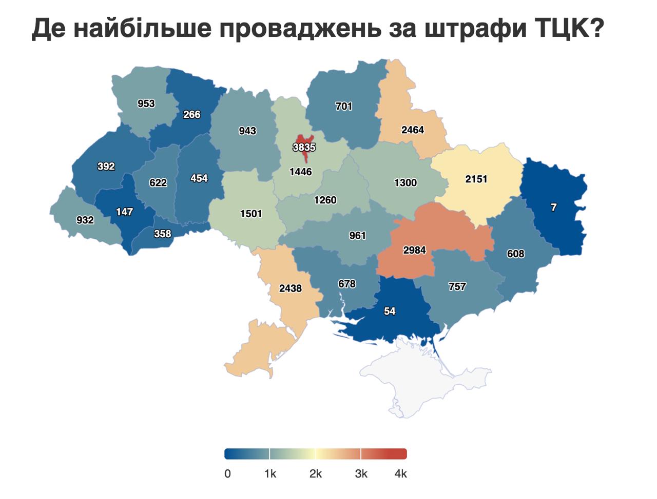 Серед регіонів найбільше штрафів виписують у Києві. Житель Чернігівської області встановив антирекорд, зібравши 8 штрафів від ТЦК.