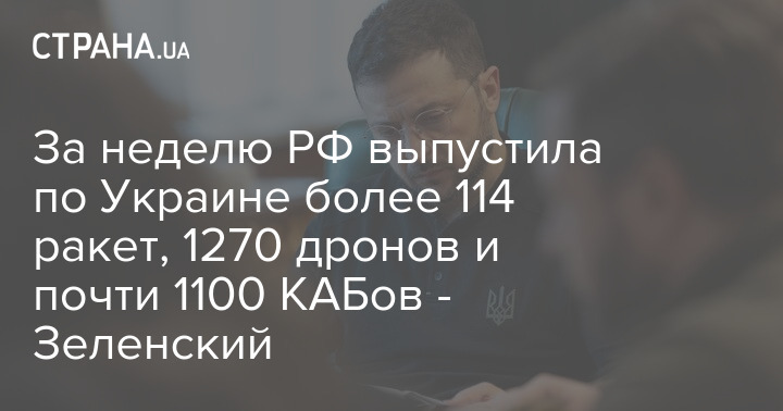За цей тиждень армія РФ випустила по Україні понад 114 ракет, понад 1270 дронів та майже 1100 КАБів. Про це заявив президент України Володимир Зеленський.