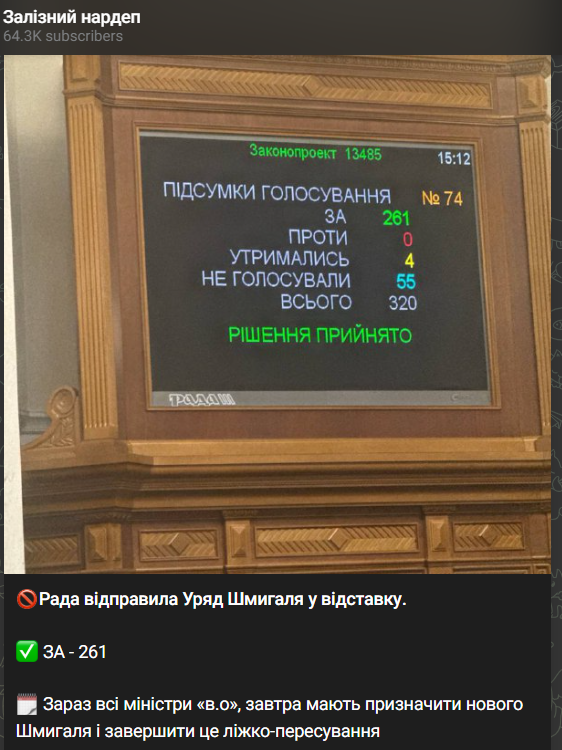 Тепер прем'єр Денис Шмигаль та всі міністри отримали приставки виконувач обов'язків, повідомляє народний депутат Ярослав Железняк.