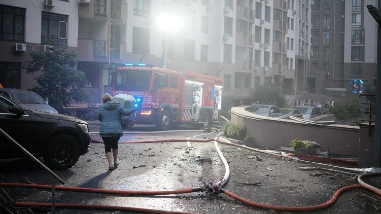 07:30 Кадри багатоповерхівки в одному із київських ЖК після повітряної атаки.