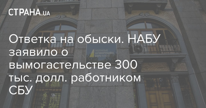 Відповідь на обшуки. НАБУ заявило про здирництво 300 тис. дол. працівником СБУ
