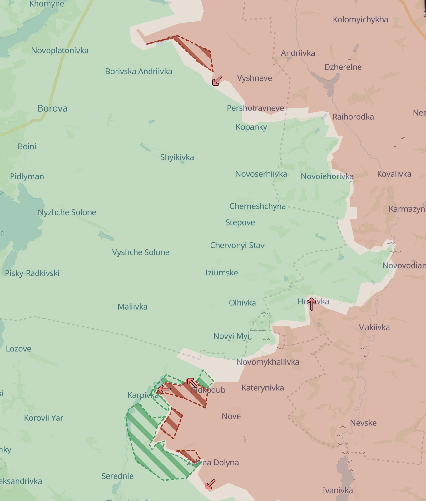 Також у РФ нові просування на суміжних Лиманському та Харківському напрямках - під Рідкодубом та у напрямку Борової.