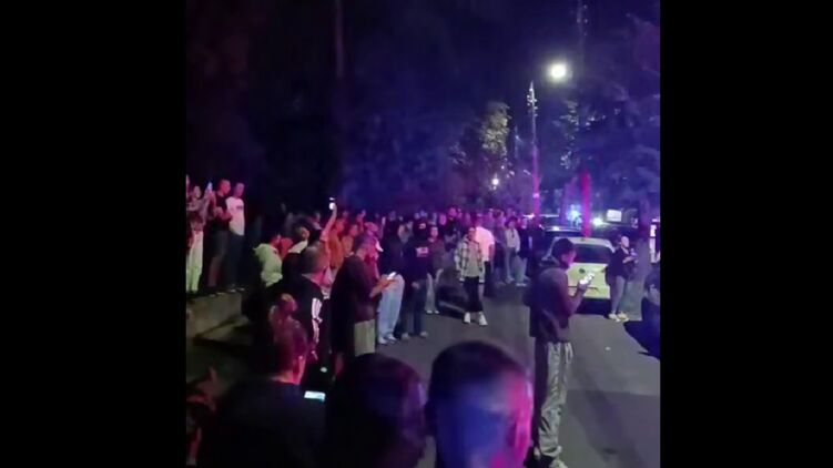 На цей час "поліцейські проводять перевірку та забезпечують охорону громадського порядку біля будівлі". З останньої цитати випливає, що люди ще не розійшлися.