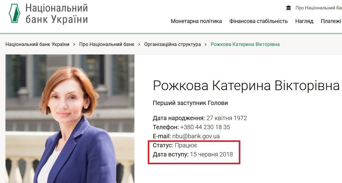 Цього чи наступного тижня можуть офіційно звільнити першого заступника голови Національного банку України Катерину Рожкову.
