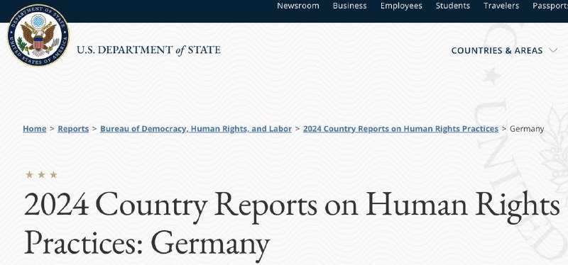 Державний департамент США у своєму щорічному звіті розкритикував ситуацію з правами людини в Німеччині. Як сказано в документі, у країні обмежують свободу думок та спостерігається зростання антисемітизму, пов'язане з міграційними процесами.