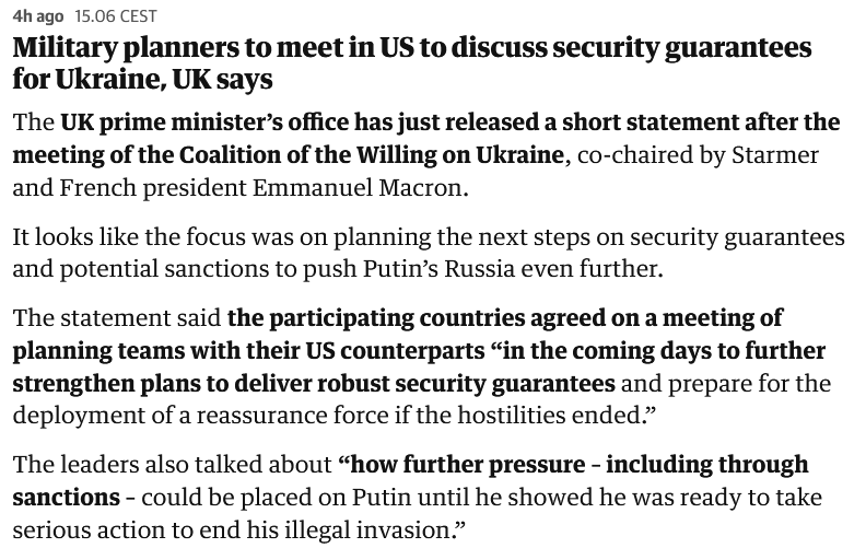 Нагадаємо, днями "коаліція охочих" за підсумками засідання заявила про готовність ввести війська до України після припинення вогню.